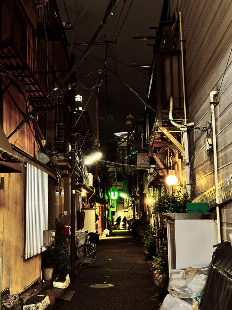路地好きとしてはたまらない地域。奥の方でおじさまが一人で飲んでいた